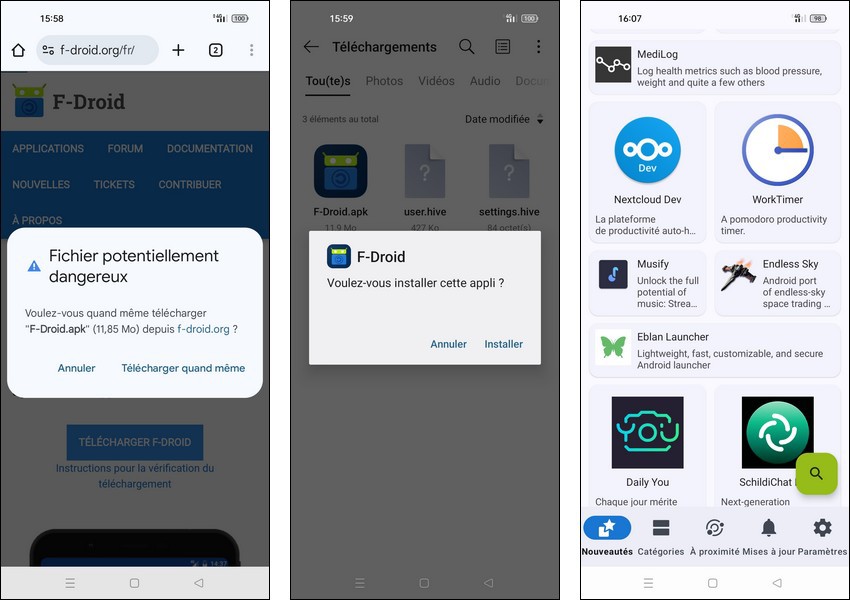 Télécharger l'APK d'installation ex : APK pour F-Droid sur le site https://f-droid.org/fr/
