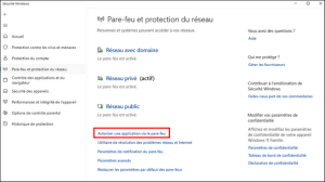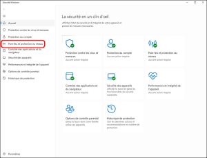 La fenêtre de sécurité de Windows s’ouvre et vous cliquez sur « Pare-feu et protection du réseau » dans le menu vertical à gauche.